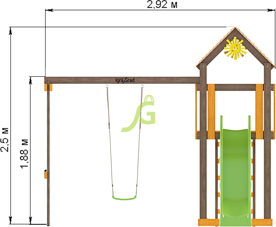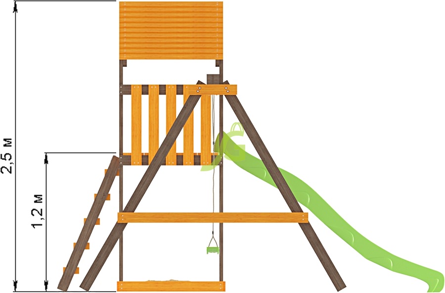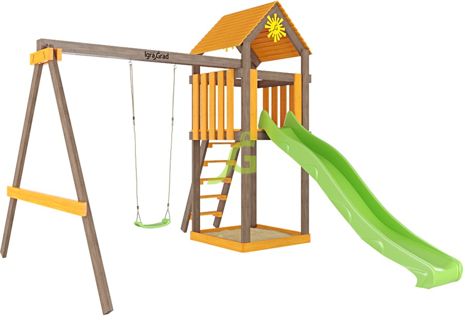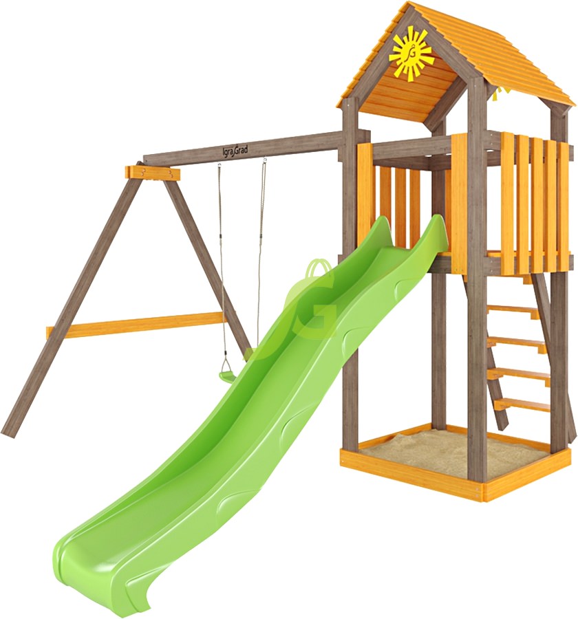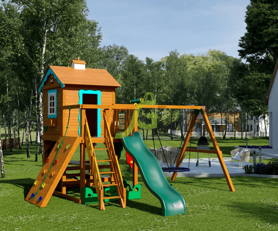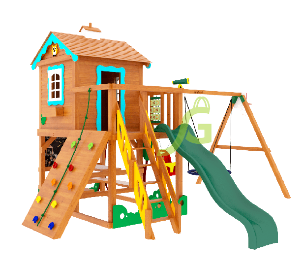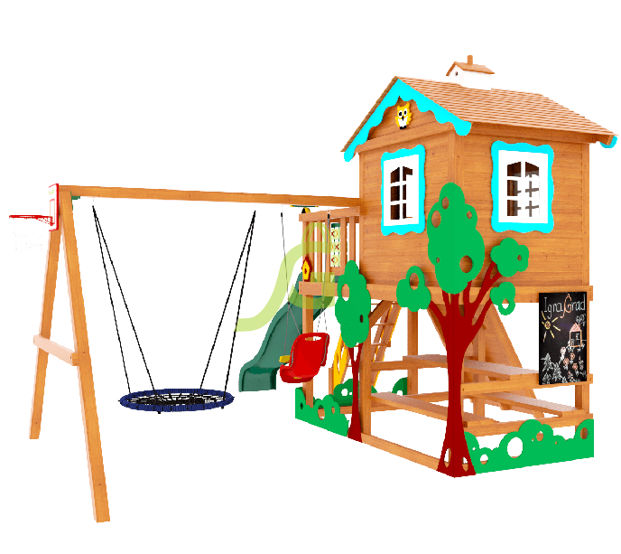 Компактная конструкция предназначена для игр небольшой компании детей, преимущество - многофункциональность. Игровой комплекс состоит из разных модулей, способствующих правильной и безопасной организации активностей