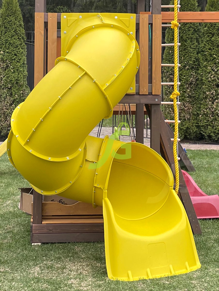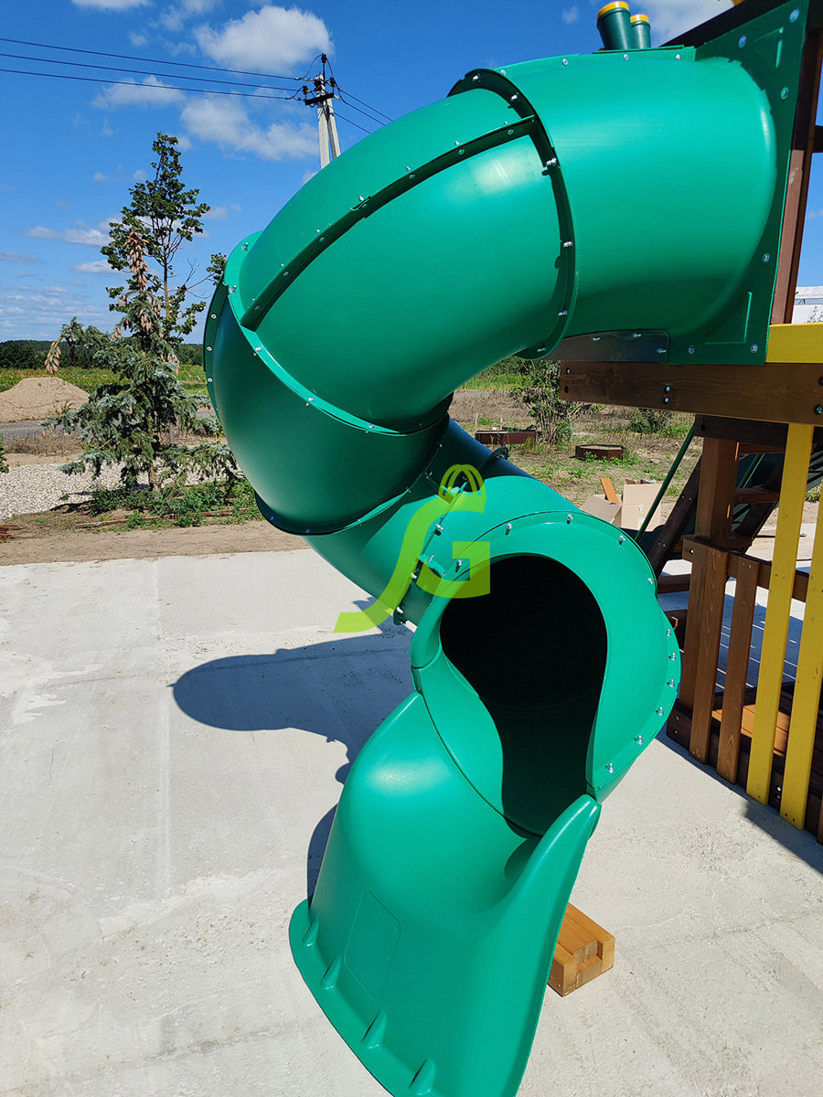 Большой пластиковый скат в виде спиралеобразной трубы без сомнения отвлечёт ребёнка от экрана компьютера.